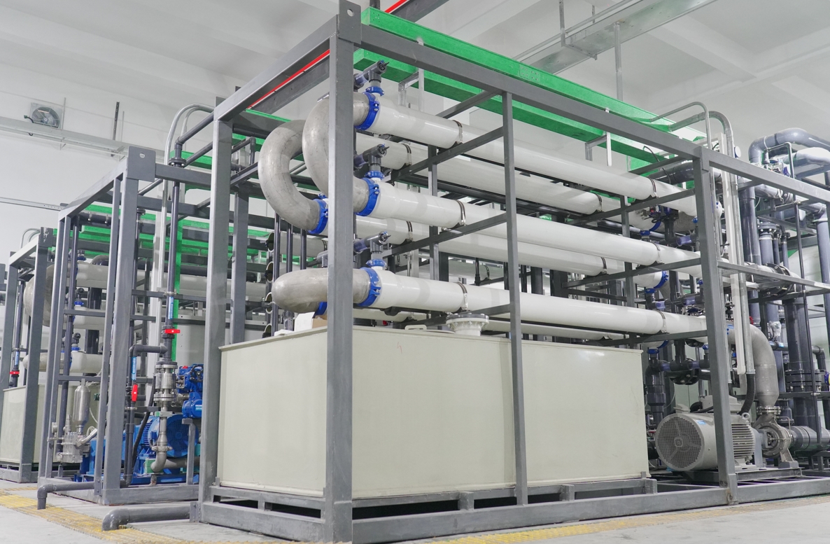 该项目设计处理量为5000吨/天,由于中德金属生态城是国内最早进行电镀废水零排放的园区,在设计时没有太多可借鉴的经验,采用的是传统“物化+生化(A²/O+MBR)+多级多段卷式膜+蒸发”的工艺,在实际运行过程中产能与零排放设计产能差距较大,系统整体运维成本偏高,制约着园区的绿色可持续发展,园区相关负责人一直在多方寻找稳定可靠的零排放改造方案。