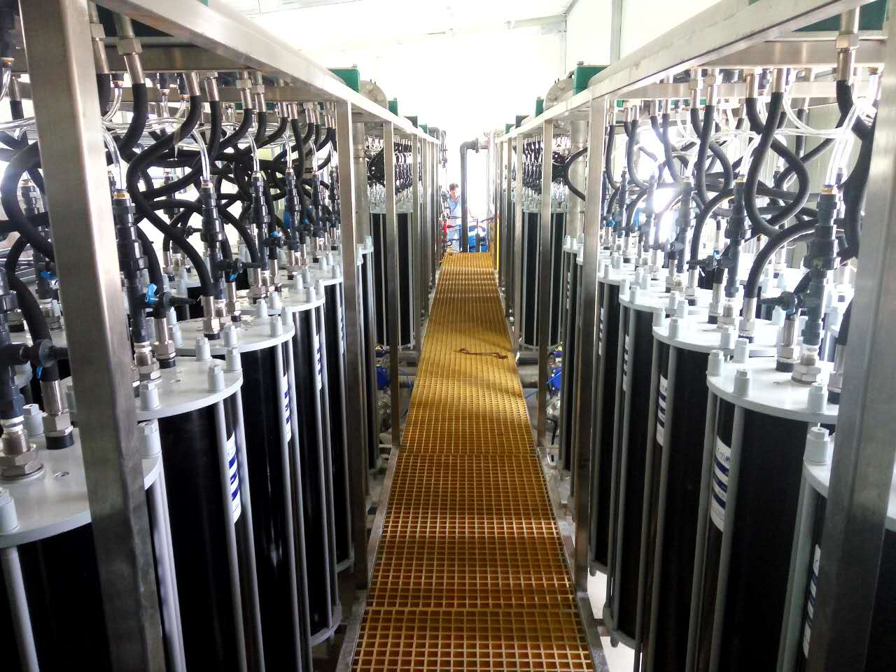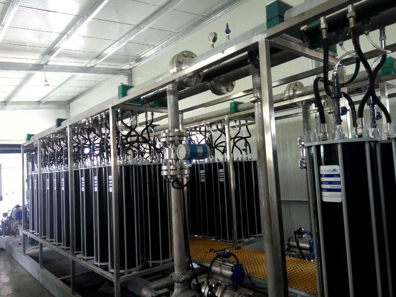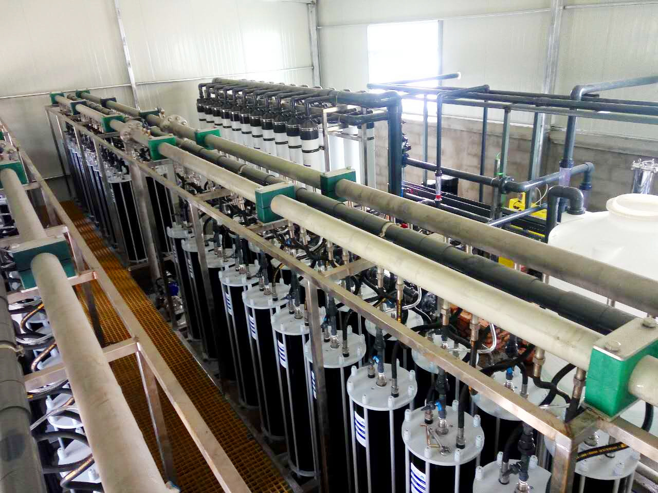 该中水回用零排放是目前亚洲最大的特种膜中水回用零排放项目。该制药企业是国内最大的抗生素生产企业之一。该项目针对高浓度高含盐制药废水,主要为青霉素制药废水、制水系统浓水、循环水排水和生化出水进行中水回用零排放处理。该项目于2014年12月调试完成,正常运行,处理总量达6300t/d,整套处理工艺采用卷式RO+SUPER RO+蒸发,其中SUPER RO膜元件使用量达400多,中水回用率达到92%以上。